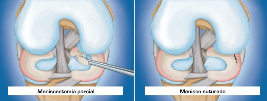 Menisectomía: consiste en retirar la zona de rotura del menisco, esto no afectaría en la función de tu rodilla posteriormente y deberías poder hacer tus actividades cotidianas y deportivas con normalidad. Usualmente se retira bajo % de tejido para poder mantener la rodilla en óptimas condiciones.